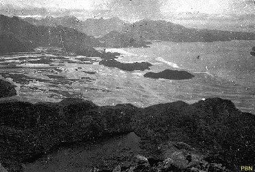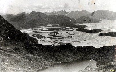 | Setting off for 'Darwin's falls' on the North shore of Kelly Inlet on Chistmas Eve 1920 (0220) | Going to 'Darwin's falls" on the North shore of Kelly Inlet on Chistmas Eve 1920 (0221) | Going to 'Darwin's falls" on the North shore of Kelly Inlet on Chistmas Eve 1920 (0222) | Kelly Inlet - Darwin Falls near Base Camp - the site of the first attempt to cross the range (0253) | Kelly Inlet photographed from the route to Glacier San Tadeo. Xavier Island in the distance (0050) |