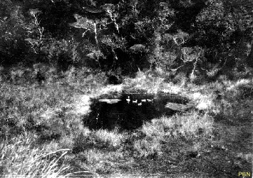 | Travelling in the bush between Kelly Inlet and Glacier San Tadeo (0099) | Approaching Warm Tarn. In the foreground are the two Chilotes followed by Allan and Nils (New) (0286) | |||