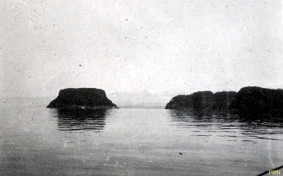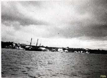 | Scene in Queilén (0011) | The Yanez, of the Chilean Navy. The cabin at the stern is where the expeditioners were accommodated (0013) | The Yanez - cabin at the stern is where the expeditioners were accommodated (0014) | On board the Yanez. l to r Allan, Captain of Yanez, the Professor and Sten (0010) | On board the Yanez. l to r: Captain, Nils, Professor and Allan (0015) |