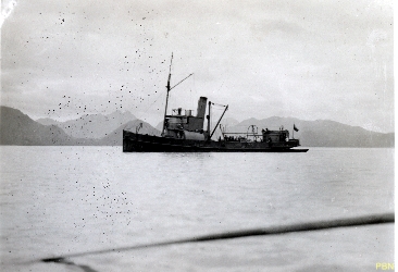| Volcano Orsorno in the front of Nils Pallin's Album at UC Special Collections (0001) | Puerto Montt, the last stop on Chile's south going railway line from Valparaiso, in 1920 (0002) | Puerto Montt in 1920 (0003) | Puerto Montt in 1920 (0004) | The Elicura. The expedition members spent their first day on Elicura (0005) |