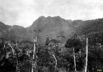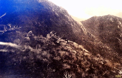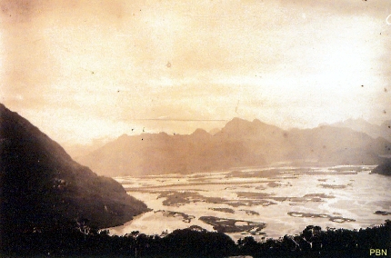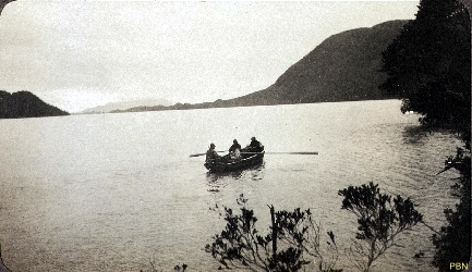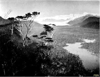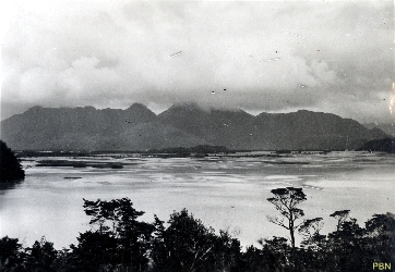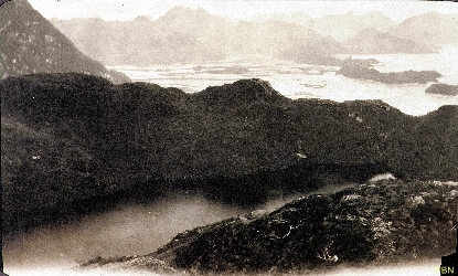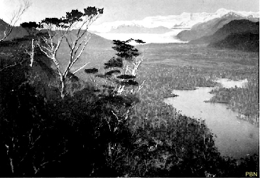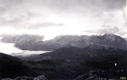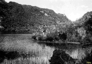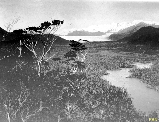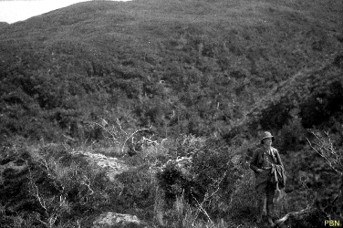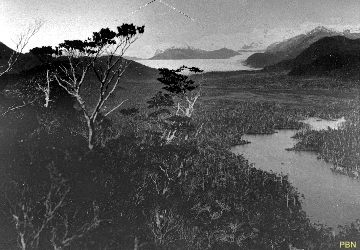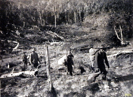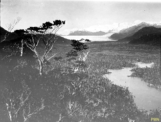 | Travelling in the bush between Kelly Inlet and Glacier San Tadeo (0099) | Approaching Warm Tarn. In the foreground are the two Chilotes followed by Allan and Nils (New) (0286) | |||