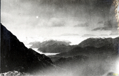 | Setting off for 'Darwin's falls' on the North shore of Kelly Inlet on Chistmas Eve 1920 (0220) | Going to 'Darwin's falls" on the North shore of Kelly Inlet on Chistmas Eve 1920 (0221) | Going to 'Darwin's falls" on the North shore of Kelly Inlet on Chistmas Eve 1920 (0222) | Kelly Inlet - Darwin Falls near Base Camp - the site of the first attempt to cross the range (0253) | Kelly Inlet photographed from the route to Glacier San Tadeo. Xavier Island in the distance (0050) |