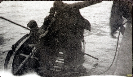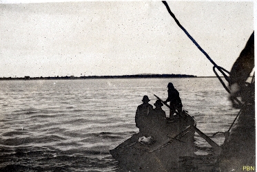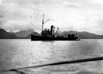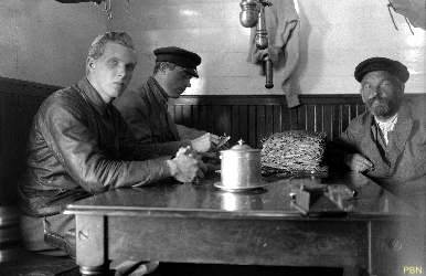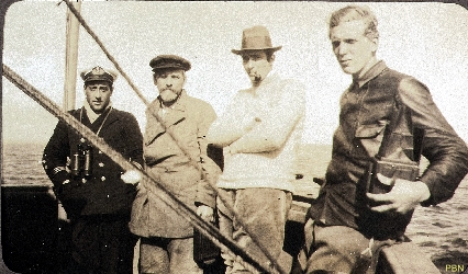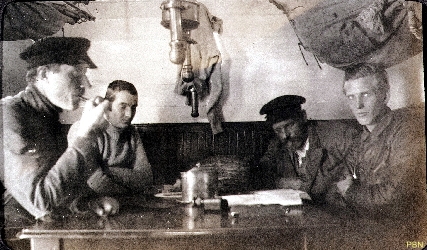 | Visit to Puerto Otway on the way (0267) | Sea view (0268) | On the way 'home'. Captain, the Professor, Allan and Sten (0269) | In the cabin at the stern of Yanez. Sten, Nils and the Professor (0270) | In the cabin at the stern of Yanez. Nils, Allan, the Professor and Sten (0271) |