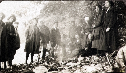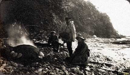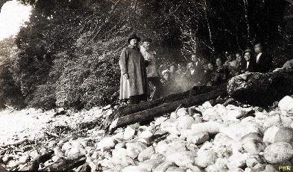 | The party cooking 'curanto' near Puerto Refugio. The crew from the Yanez joined the crew of Huandad for the feast. (0040) | The party cooking 'curanto' near Puerto Refugio (0041) | The party cooking 'curanto' near Puerto Refugio (0042) | Transferring to a ship's boat (0043) | Sten (0044) |