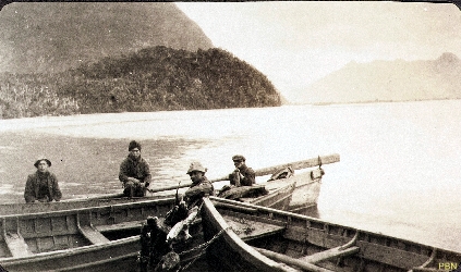 | Volcano Orsorno in the front of Nils Pallin's Album at UC Special Collections (0001) | Puerto Montt, the last stop on Chile's south going railway line from Valparaiso, in 1920 (0002) | Puerto Montt in 1920 (0003) | Puerto Montt in 1920 (0004) | The Elicura. The expedition members spent their first day on Elicura (0005) |